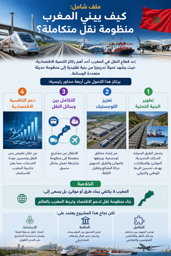 يُعد قطاع النقل في المغرب أحد أهم ركائز التنمية الاقتصادية، حيث يشهد تحولًا تدريجيًا من بنية تقليدية إلى منظومة حديثة متعددة الوسائط.